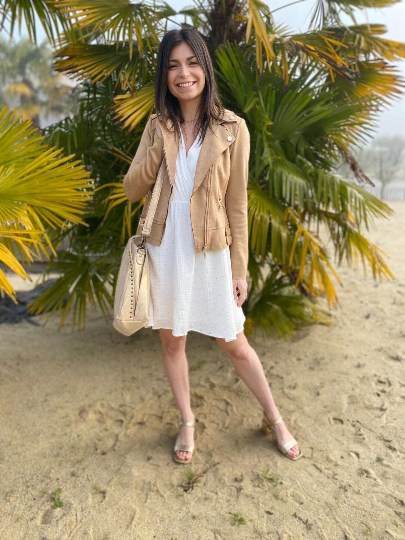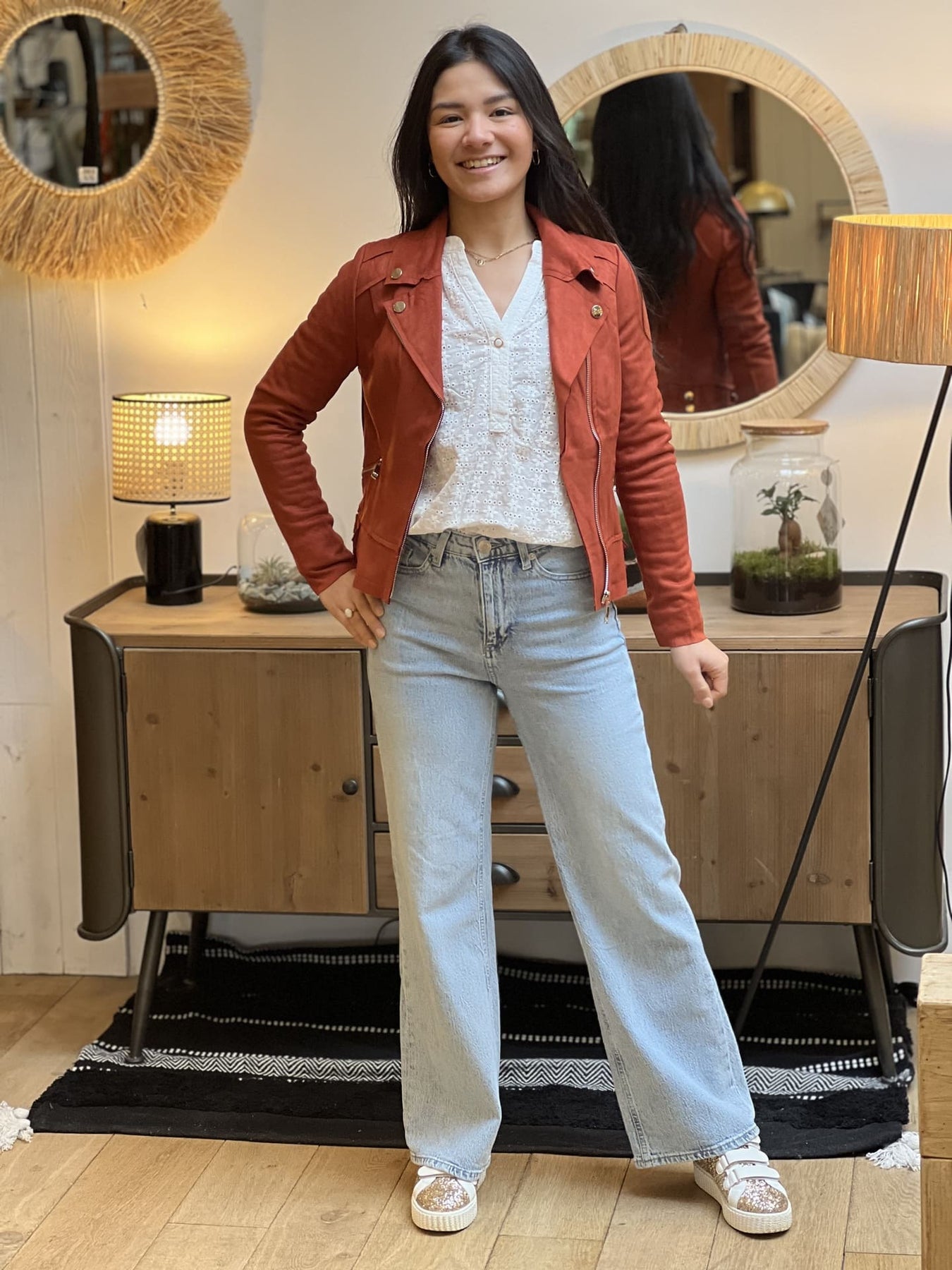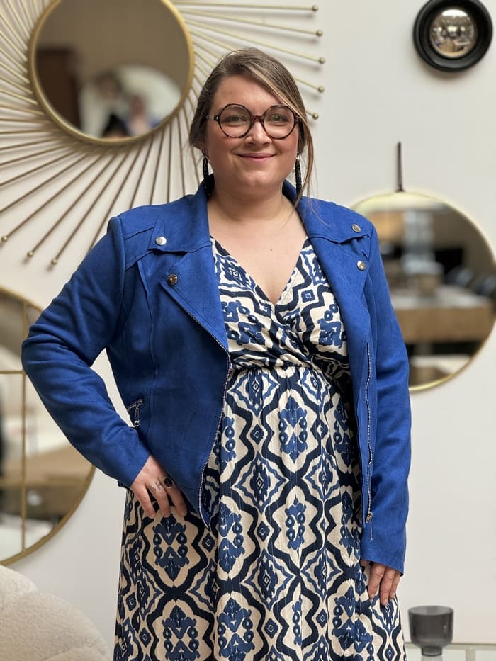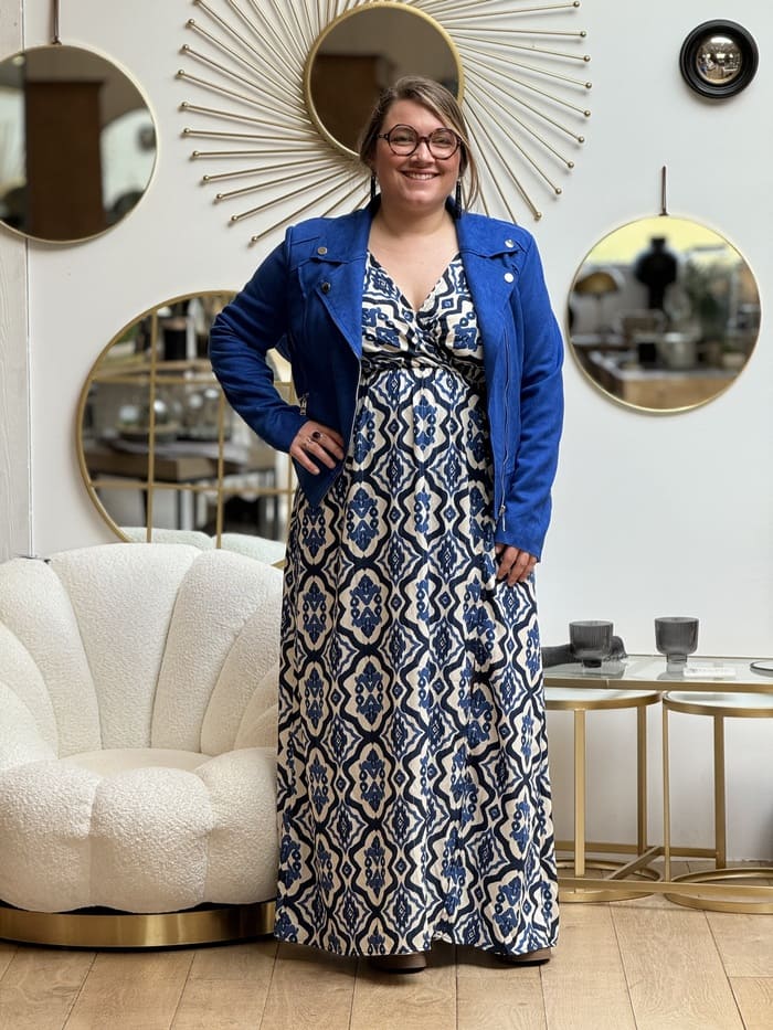 Margaux měří 1m55. Nosí velikost 2XL (44) pro tento model.