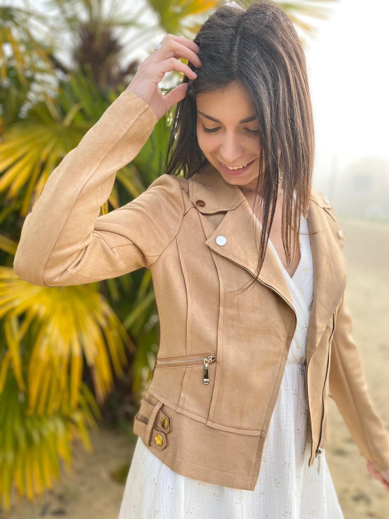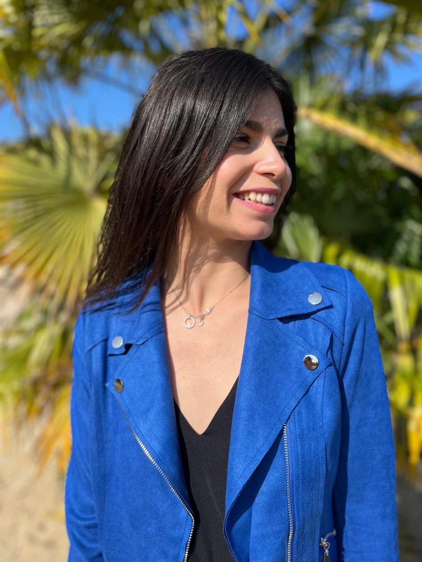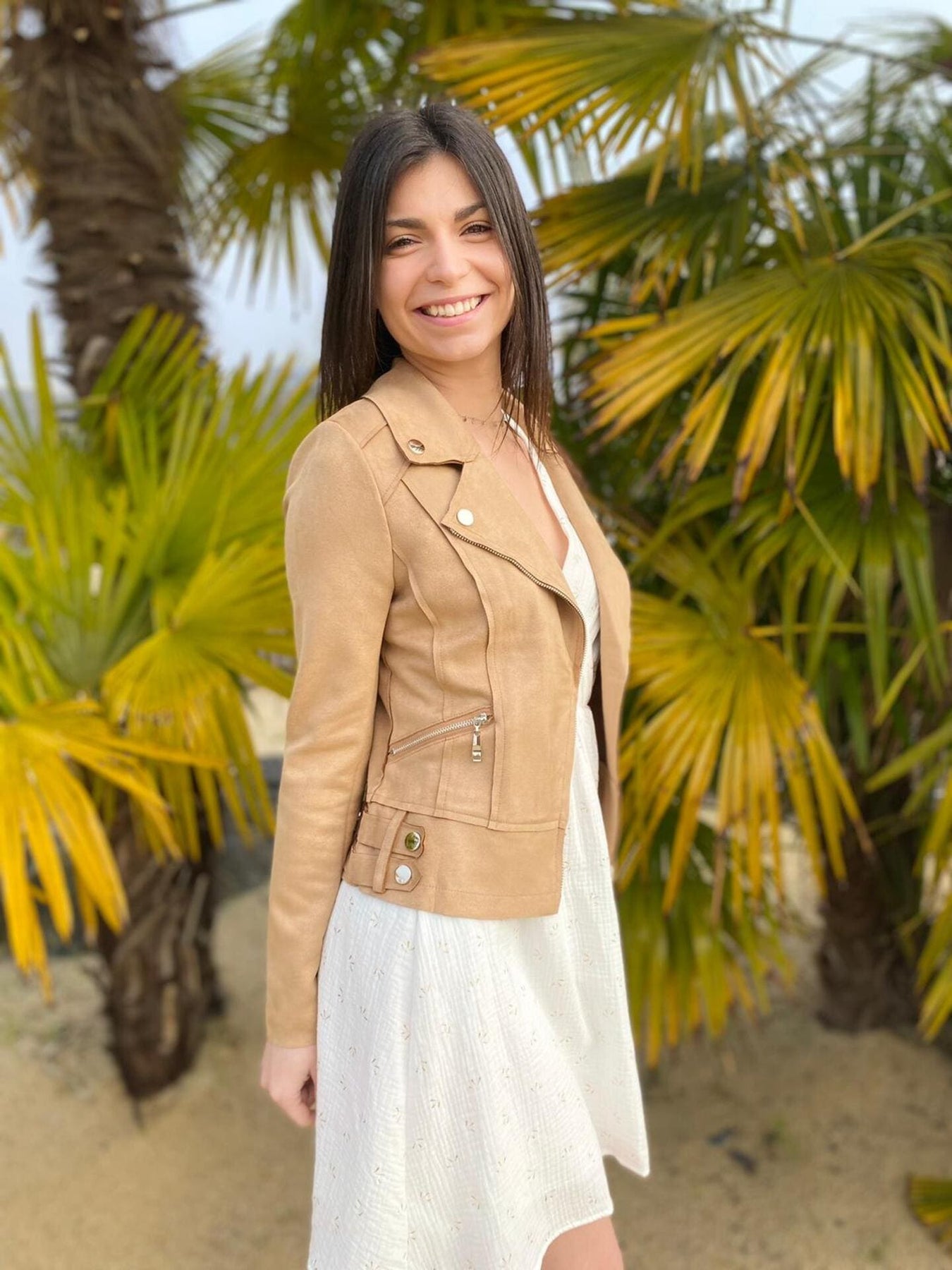 Margaux měří 1m55. Nosí velikost 2XL (44) pro tento model.